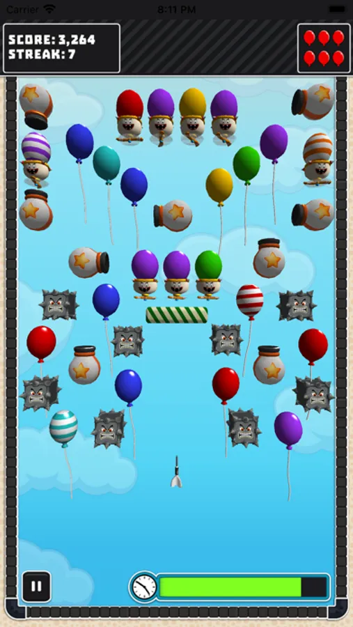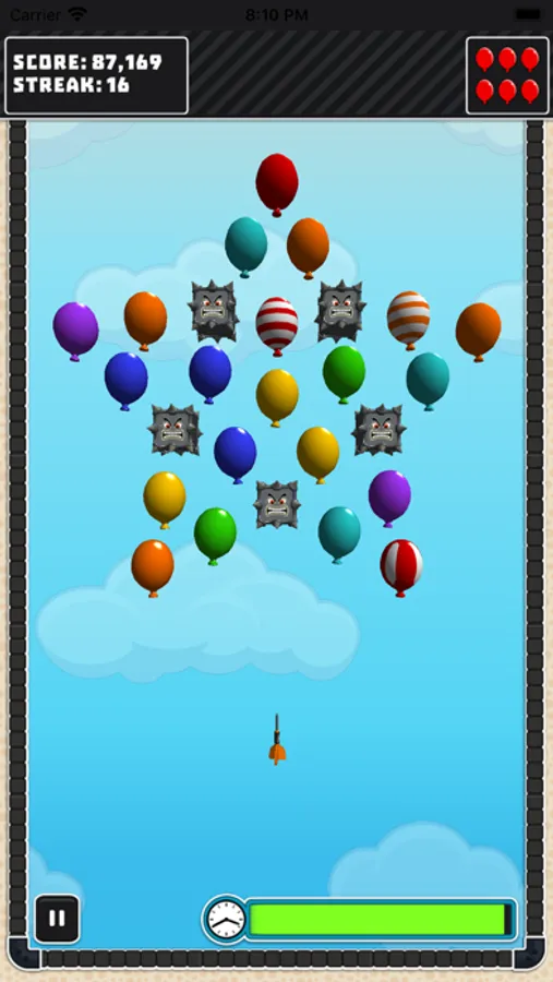 This rockin' arcade style action-puzzler is sure to keep you entertained! This time around, we're packin' tons of carefully crafted crazy cool levels, with more hot action than you can shake a stick at! Great for the casual gamer who just wants to relax and casually burst balloons. Don't be fooled though, this ain't your grandma's dart game! We've got a fully stocked arsenal of wacky challenges ready for you to tackle! You will instantly fall in love with simple and addicting gameplay style! However, there's plenty of original content to shred through! So, kiss your boredom goodbye, we've got the cure!