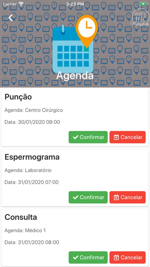 -Possiblidade de confirmar ou cancelar um agendamento.