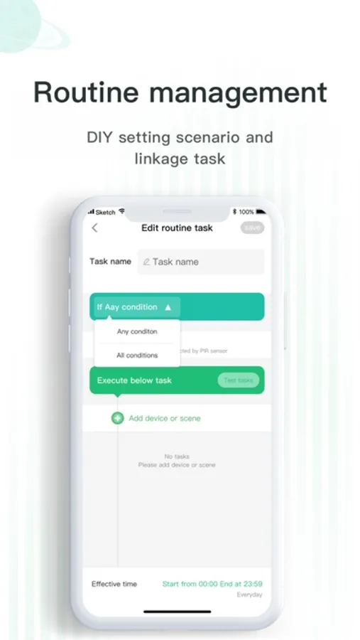 Based on sensor technology and AI algorithm, the APP is able to detect user’s need and accordingly make recommended scenario to user.