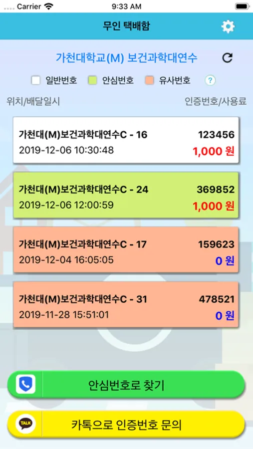 스마트폰만 있다면 언제든지 인증번호 없이도 택배를 찾을 수 있으며 안심번호/유사번호/다시열기/카톡문의 등의 다양한 편리한 기능을 이용할 수 있습니다.