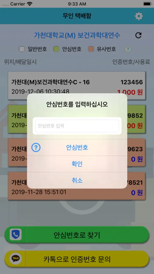 1. 안심번호인 경우 화면 하단의 "안심번호로 찾기" 기능을 이용하십시오.