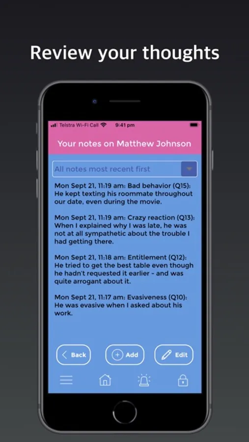 • Gives you a place to record your date’s reactions and your thoughts so you can begin to see patterns