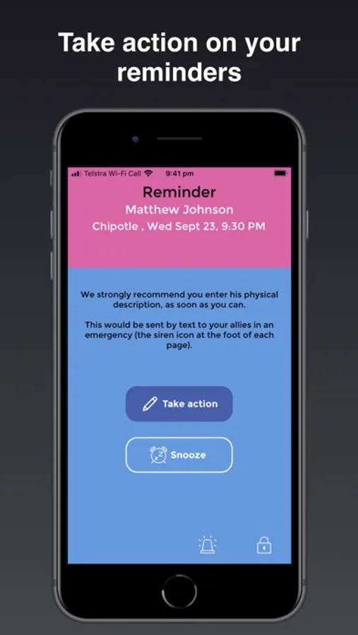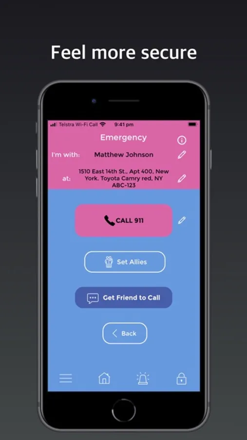 • Enables you to quickly alert allies & call 911 if you feel in danger