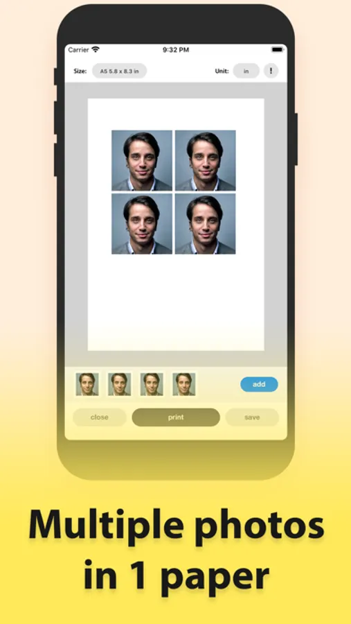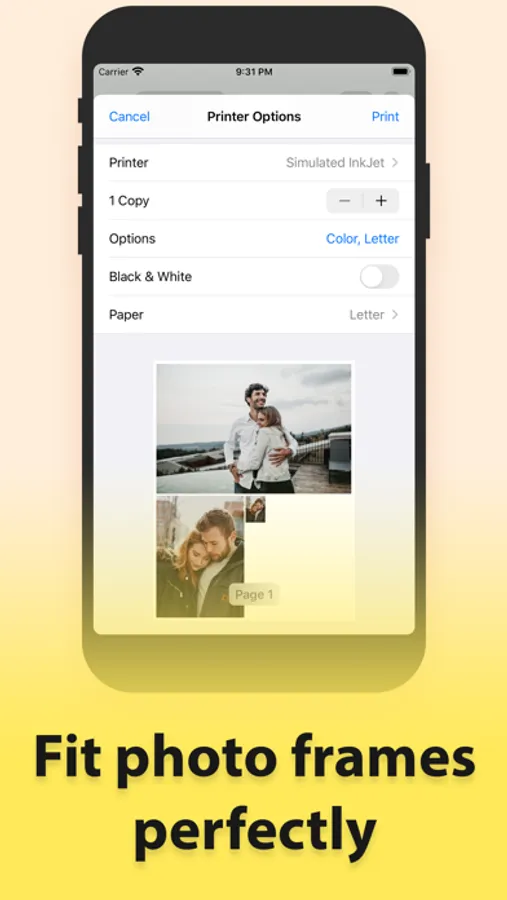 This app allows you to print your photos in real size like inch or centimeter. You can add multiple photos, resize and crop them, and then send to any printer right from your device.