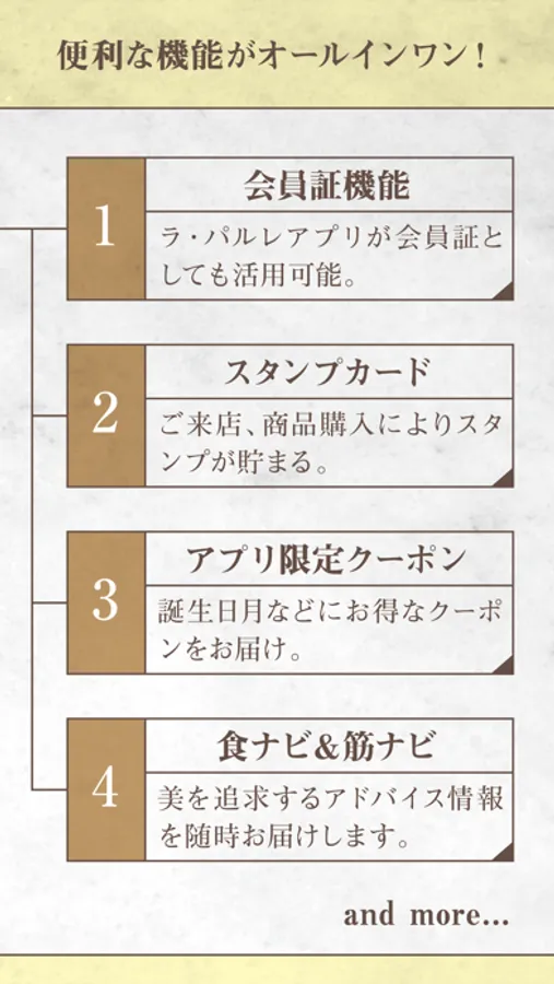 「ラ・パルレ」公式アプリでは、会員証をアプリに表示でき最新情報やアプリ限定のお得なクーポンを随時配信しています。