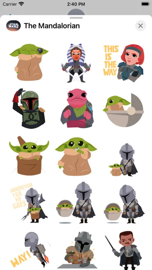 This is the way. We added new animated stickers from The Mandalorian featuring the Child and more to iMessage and WhatsApp. Download the stickers and watch The Mandalorian, now streaming on Disney+.