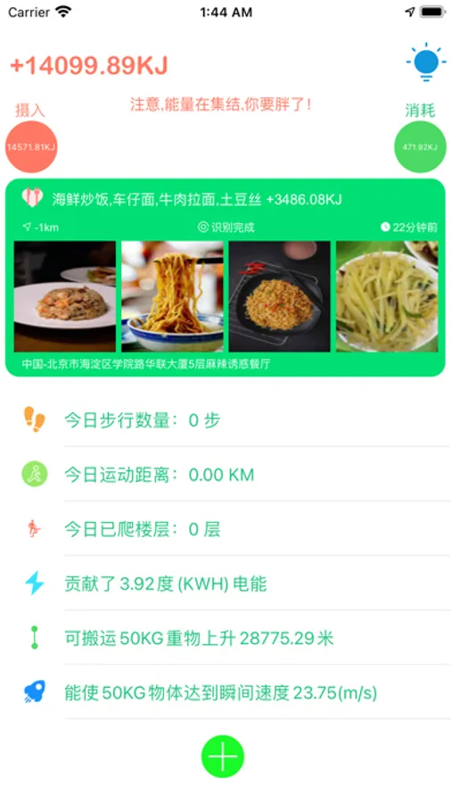 支持美食能量简单方式录入记录分析和Ai智能识别美食能量的功能。