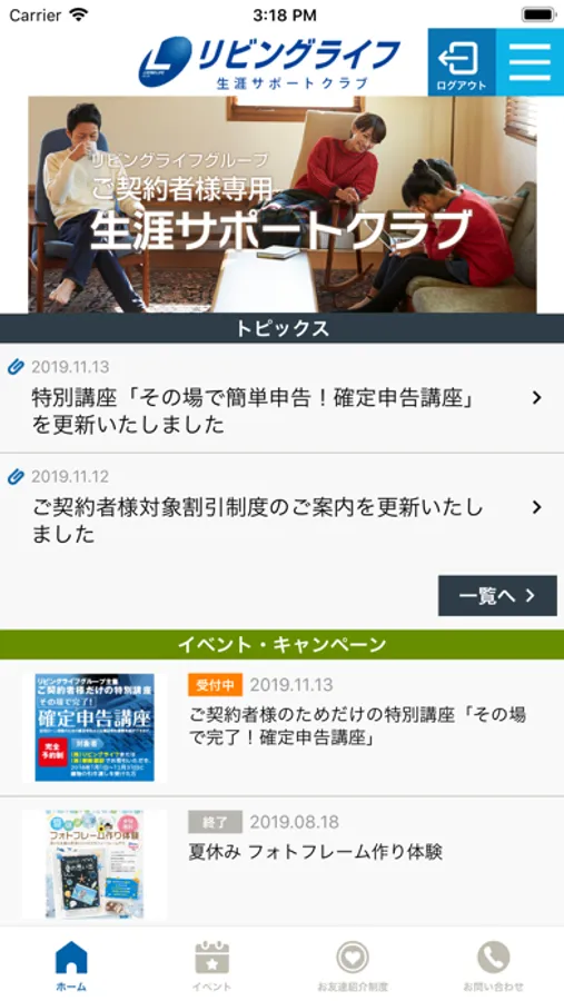 生涯サポートクラブとは、リビングライフグループのご契約者様にご入会いただいている会員専用サービスです。