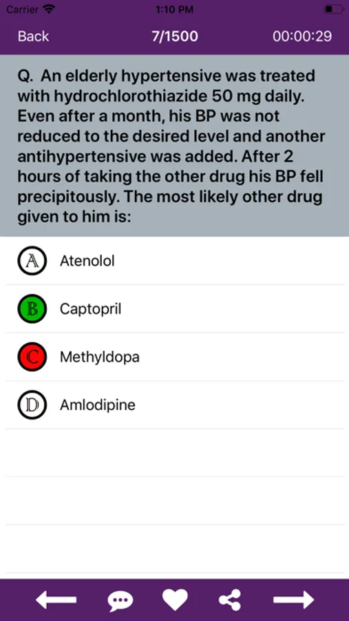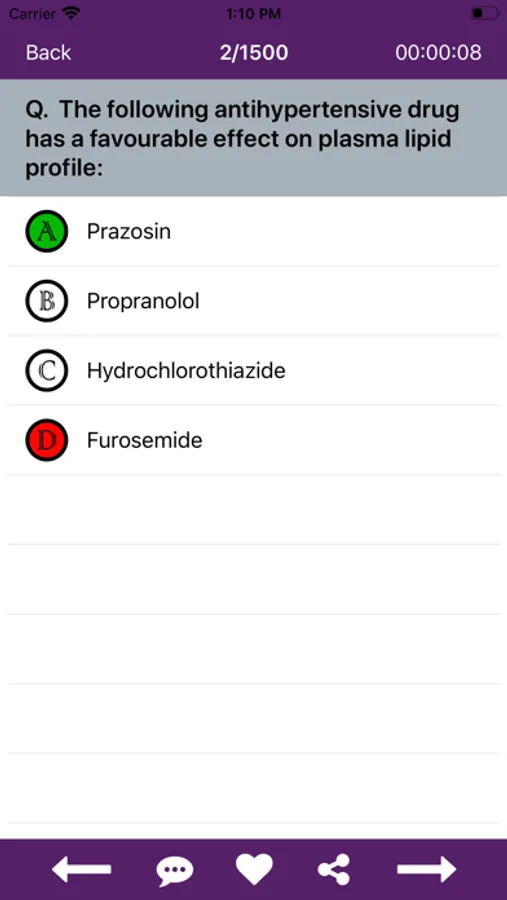 Pharmacology Quiz provides you one more feature 'Bookmark' for bookmark your favourite questions while playing quiz.