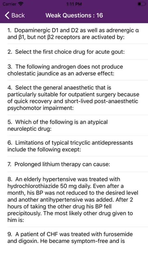 Pharmacology Quiz Gives you an awesome features called Strong & Weak Questions for you to check what are the STRONG & WEAK Questions depends on your score.