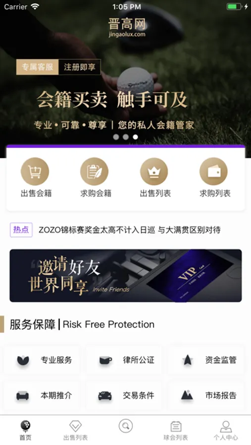 晋高网提供高尔夫、游艇、马会、城市会所等综合会籍的线上交易服务、高尔夫球会信息查询,会籍信息展示服务等。