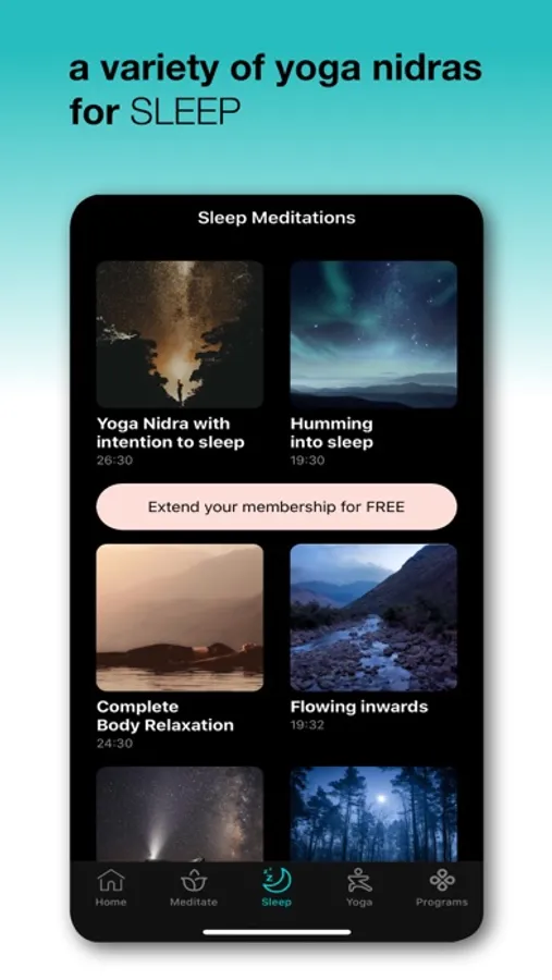 Also check out the extensive meditations for sleep with practices like breathing exercises, gratitude, affirmations, and visualisations.