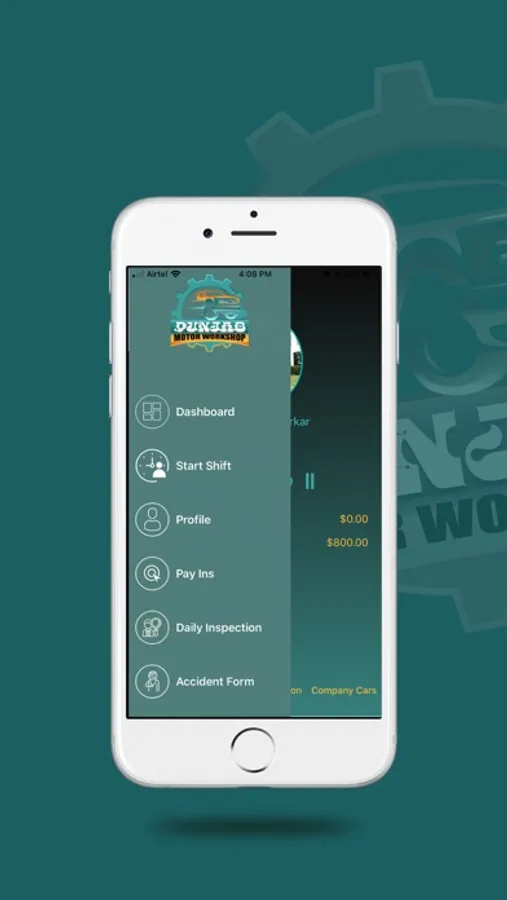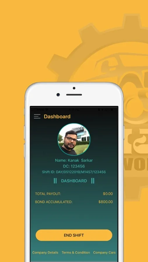 Dashboard:: This page give the driver his shift details , any due amount information and bond held at any given time by the depo for the driver.