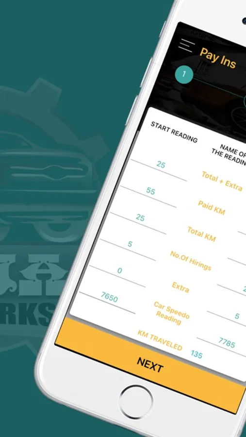Pay-in page:: Captures the taxi meter readings as input by the driver and part of the information is then used to calculate his takings for the shift allocated .