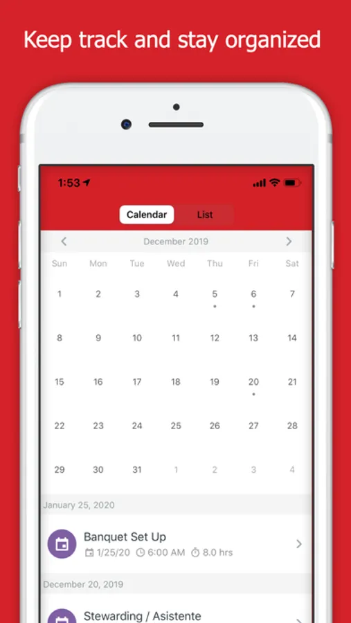 Access new opportunities, auto-sync your personal calendar with the jobs you have accepted, get reminders about your work schedule, utilize navigation features within the app to guide you to your work location, and easily clock in and out with the in-app time clock