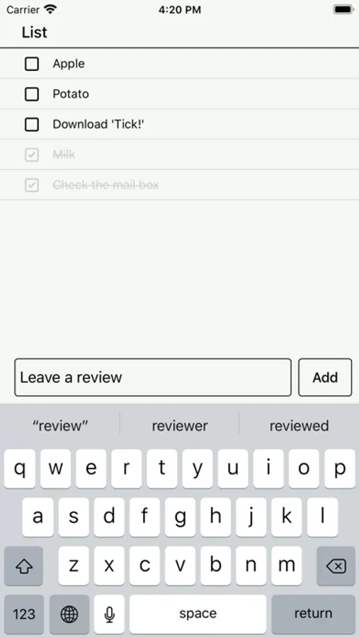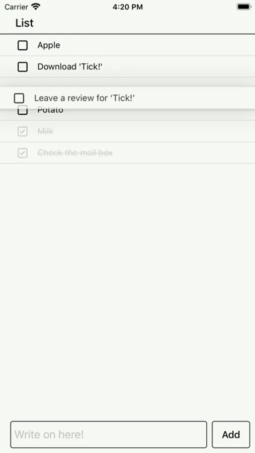- Double tap the lines or single tap the box to check/uncheck the lists.