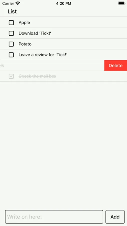 - Swipe from left to right to remove any unwanted or accomplished tasks on the list.
