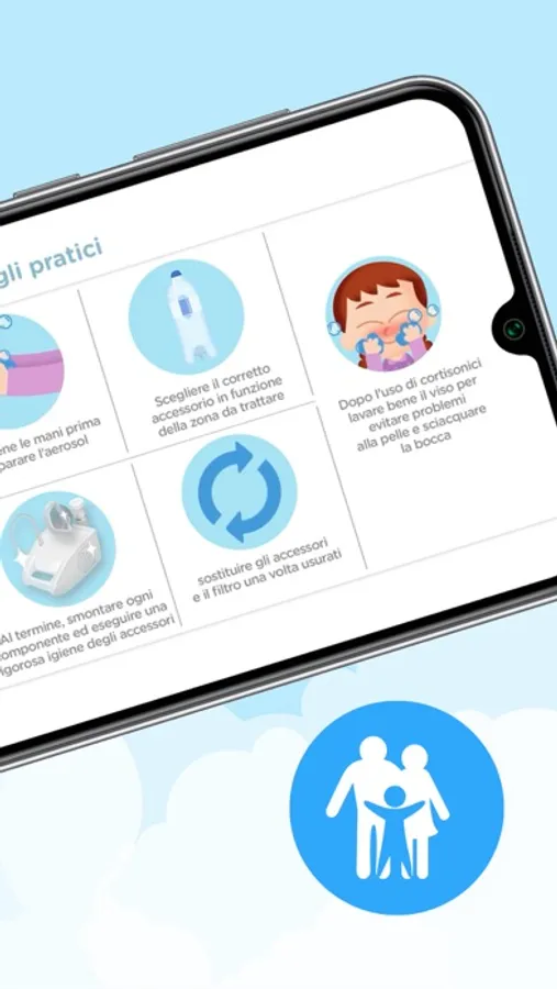 L'aerosol è una terapia per il trattamento delle malattie respiratorie, ed è fondamentale farla nel modo corretto! La modalità di inalazione, la scelta degli accessori e la loro manutenzione sono aspetti fondamentali, a volte poco conosciuti e soprattutto difficili da applicare correttamente a un bambino intimorito e poco "collaborativo". L'app è pensata proprio per intrattenerlo durante l’aerosol e fargli capire tramite il gioco, in modo divertente, l'importanza della cura che sta svolgendo. Inoltre, una sezione dell'app specifica per i genitori offre informazioni e tutorial sulla corretta applicazione dell'aerosol.