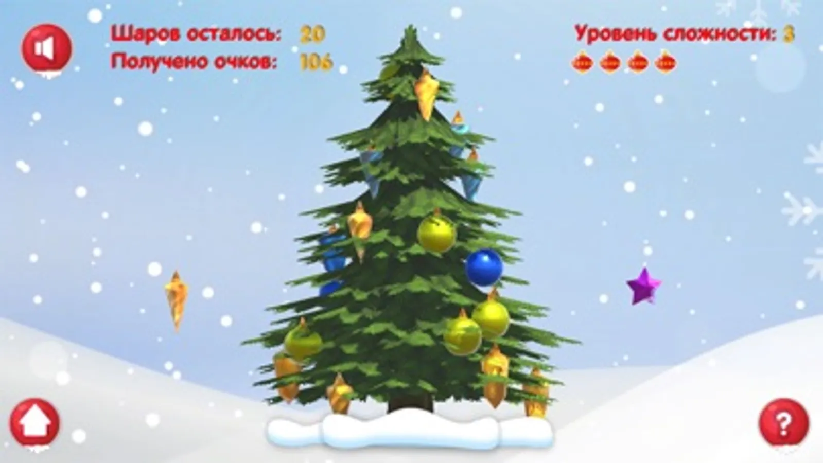 - «Наряди елочку» - нажимай на экран справа и слева от елки, чтобы нарядить ее игрушками.