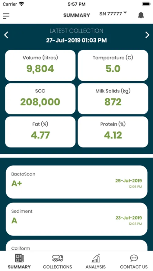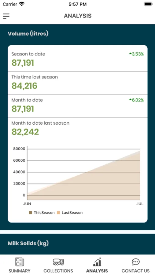 This app offers insights and analysis into milk collection results and allows Access of up-to-date milk production and milk quality data at any time. Analyse and drill deeper into each of the quality points with powerful full season to season comparison. Useful FAQ, contact, and alert notifications of new collection and result data.