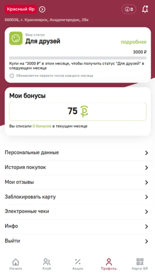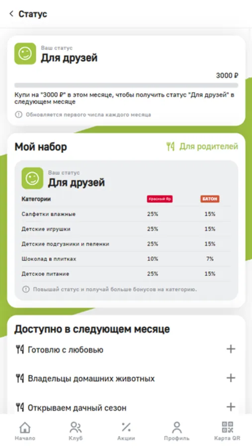 * Следи за своим уровнем в программе и изменениями бонусного счета.