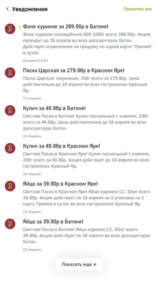«Премия» — самый удобный способ пользоваться всеми преимуществами программы лояльности в гастрономах «Красный Яр» и дискаунтерах «Батон»: