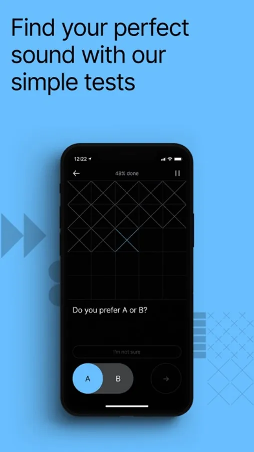 - Complete a simple A/B test to tailor sound to your preferences and hearing