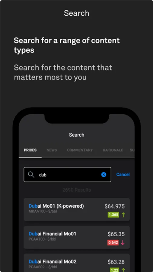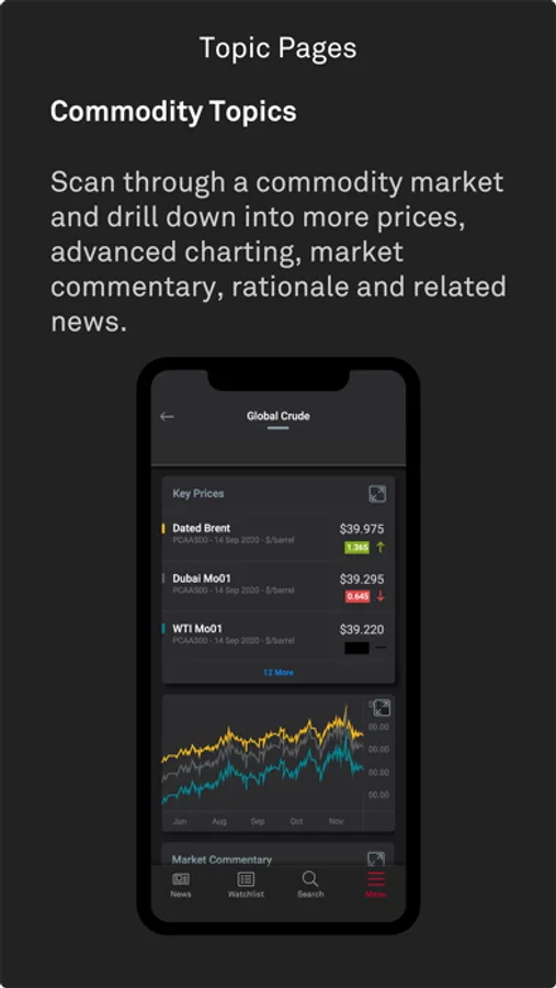 The Platts Connect mobile app and Apple watch app are the best ways to experience S&P Global Commodity Insights data and content while on-the-go. Get instant access anytime and anywhere that you need to reference commodity prices, news, market reports and analytics research. Experience instant alert notifications, advanced charting, synchronization with desktop and a robust offline mode for times that you are without connectivity. Also, add the Platts Connect widgets to your home screen to stay closely connected to the news and prices you care about.
