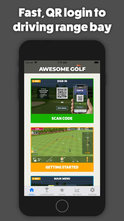 Get the most out of your Awesome Golf experience with this rather excellent community app! Used in conjunction with Awesome Golf, this app allows easy user registration, fast ‘QR’ login to Awesome Golf ranges, not to mention access to all your stats from your Awesome Golf sessions, challenge and shootout leaderboards, and more.