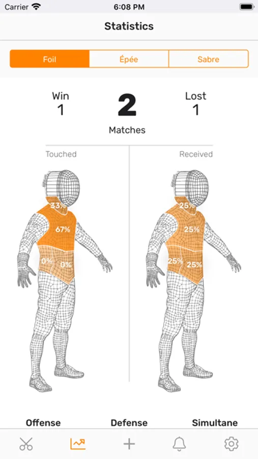Track, analyse and improve your fencing with detailed statistics about your performance in hand. Monitor your activity during trainings and matches, collect precise data on hits, misses, wins and losses with our app and learn to win more easily.