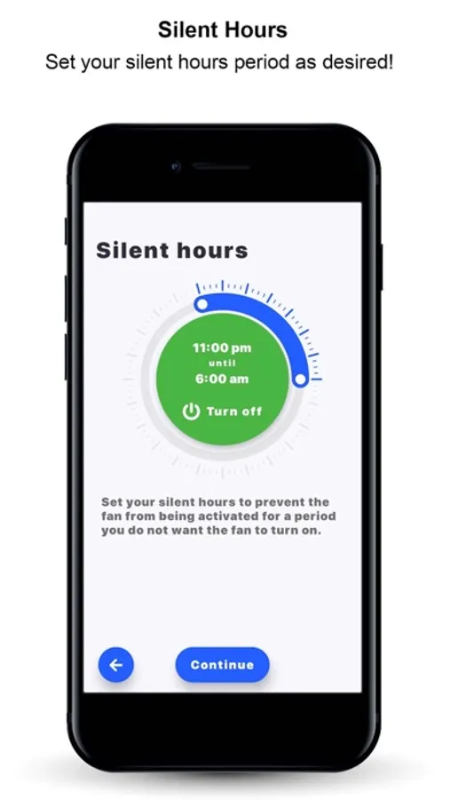 Customisable silent hours and room refresh features preventing the fan from operating at night and keep the room health optimum.