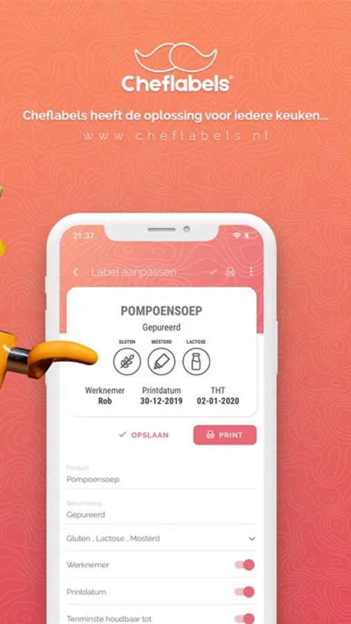 Niet alleen voedsel, maar ook kant-en-klare HACCP-labels worden voortaan in de keuken bereid. Chefs kunnen nu met hun smartphone à la minute elk gewenst label creëren, printen en plakken. In minder dan 30 seconden een duidelijk en leesbaar voedsellabel, dankzij de compacte Cheflabels-printer die in de keuken staat. Dat is praktisch en efficiënt werken. Dat is Cheflabels.