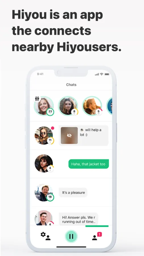 Hiyou uses all the best bits of tech to spark real connections with the people right around you. Right here. Right now. Hiyou is a communication platform that connects other Hiyousers within a visible range from each other. Hiyou reflect real-life meetings. Upload your image and look who's nearby. Click on the image and start the conversation.