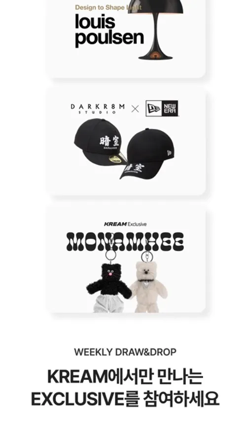 KREAM은 한정판 상품을 판매하고 구매할 수 있는 거래 플랫폼입니다.