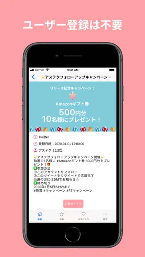 ■ユーザー登録は不要です。どなたでも簡単にASTECUで懸賞情報を見つけることができます。