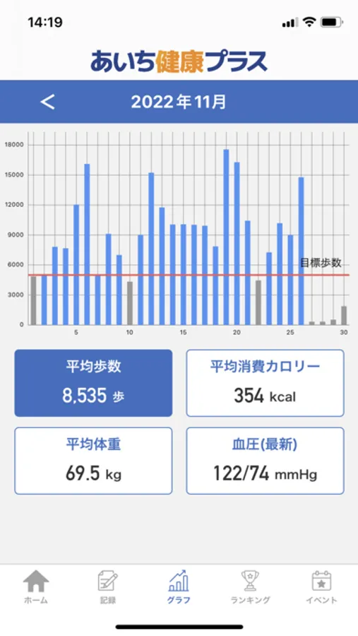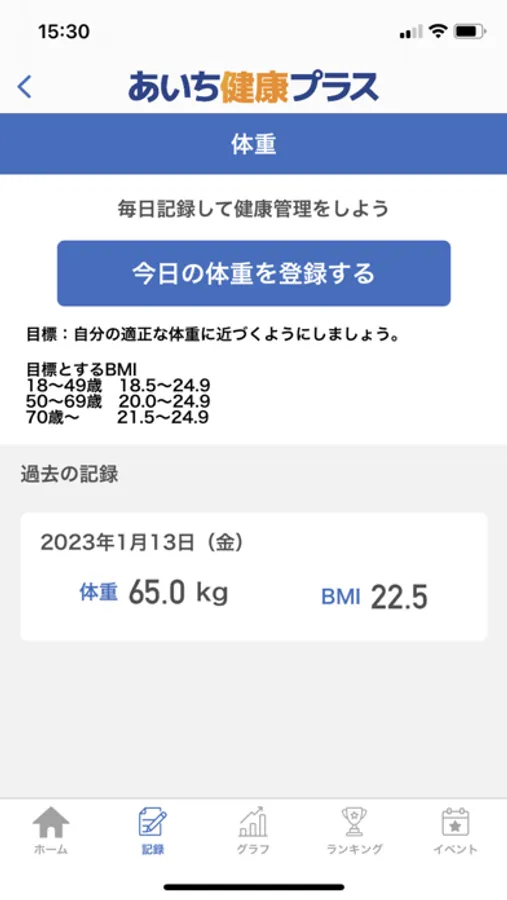 健康づくりに関する取組(チャレンジ)の管理機能だけでなく、歩数、体重や血圧の測定結果、定期健康診断やがん検診等の健(検)診の受診状況なども記録できますので、日々の健康管理にお役立てください。