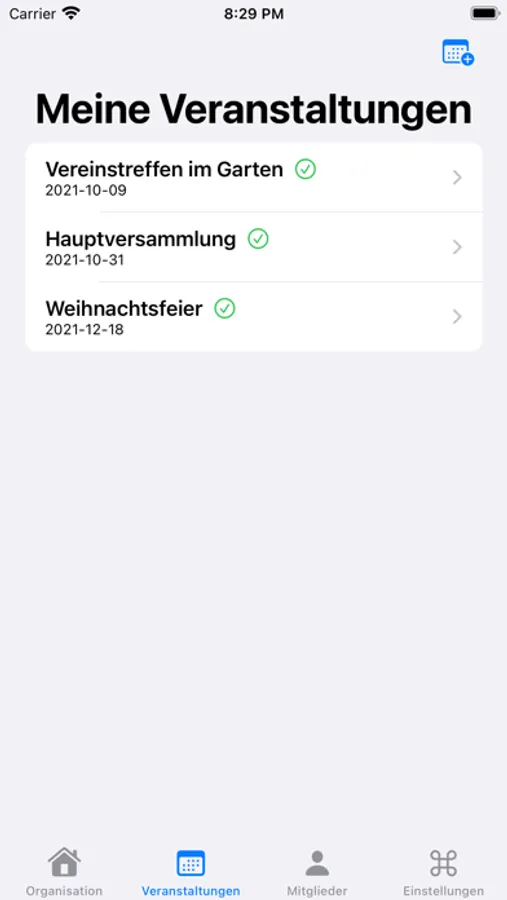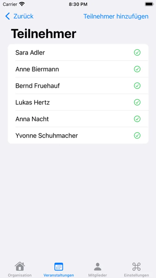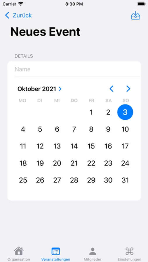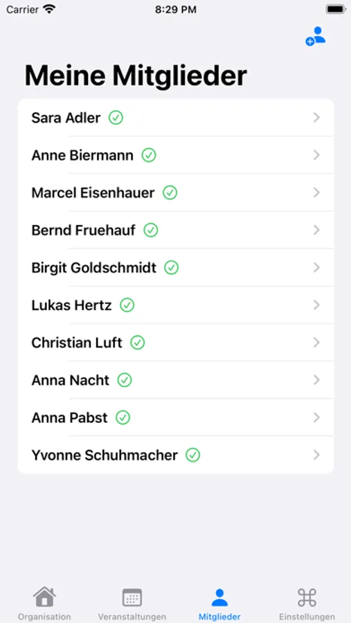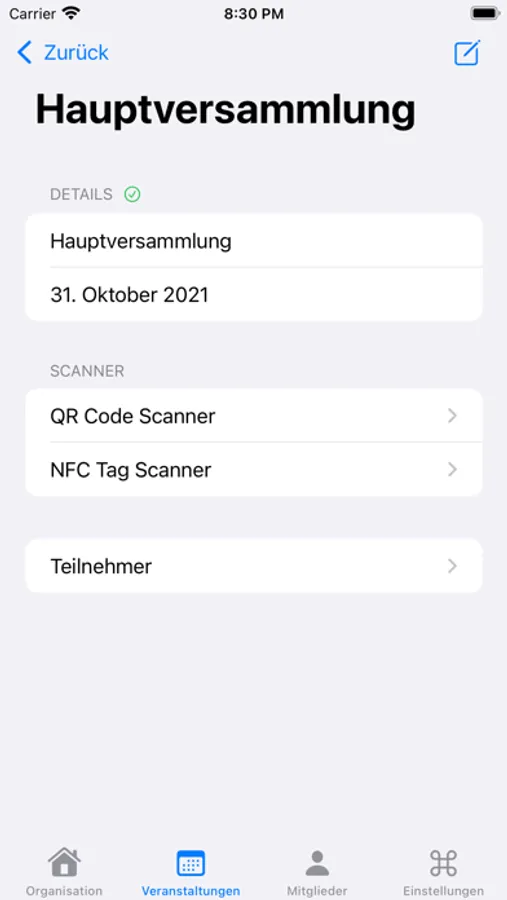 Innerhalb der App können einfach neue Veranstaltungen und Mitglieder in deiner Organisation angelegt und bearbeitet werden.