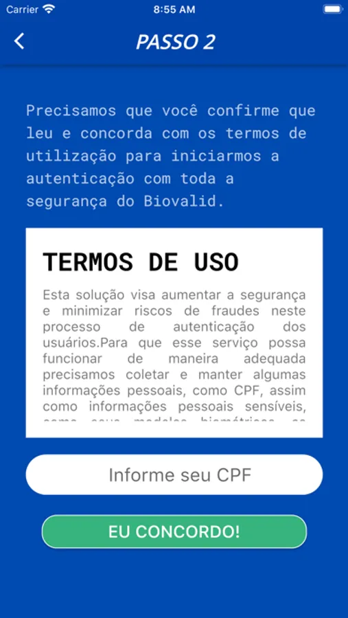 Para aumentar a segurança da transação, o Biovalid solicita que você, inicialmente, tire uma foto na hora, a partir das instruções do aplicativo instalado no celular para verificar que é você mesmo que está, naquele momento, solicitando a validação de identidade. Uma espécie de autenticação online, que traz segurança para todos os envolvidos.