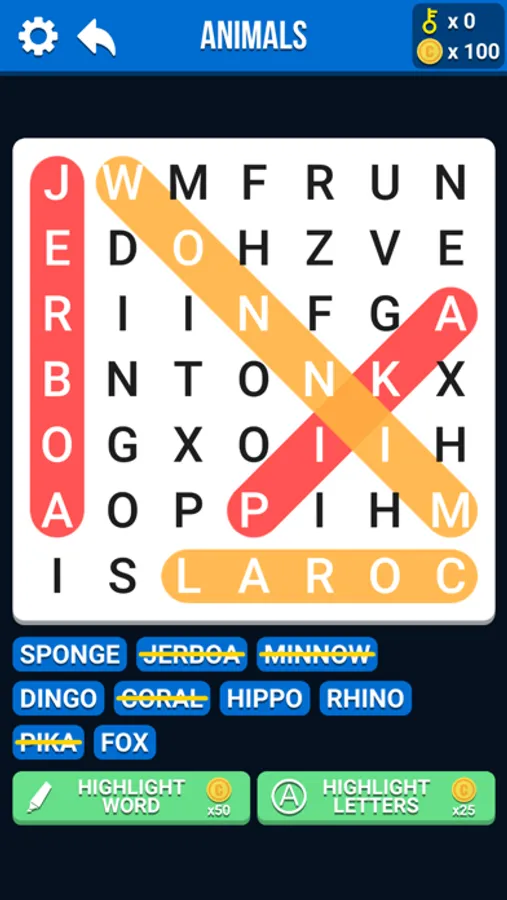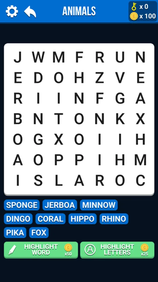 Simply select one of the many categories and start a Casual or Progress game, then use you finger to swipe and select letters on the game board. Select all the correct words and you win!