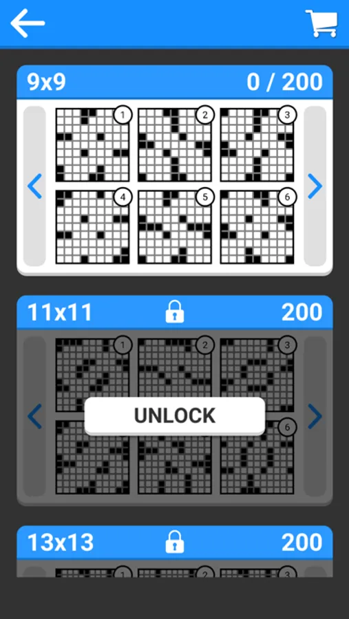 - Includes 800 randomly generated crosswords spread across four packs: 9×9, 11×11, 13×13, and 15×15.