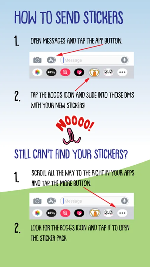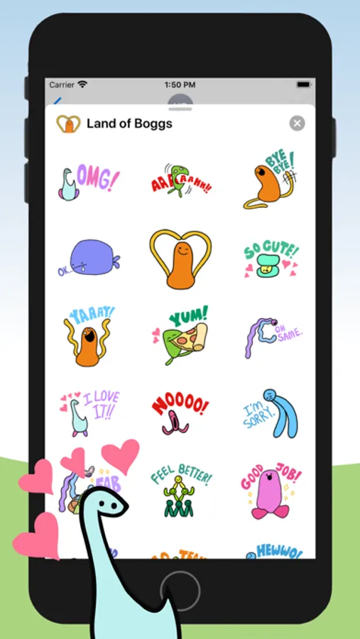 The lovably weird Boggs are here to inhabit your messages with THIRTY THREE unique and awesome stickers! Have fun sliding these into your DMs all day long with your friends. You'll never need another sticker pack to say exactly what you want to say no matter who you are. Follow @thelandofboggs on instagram for surprise rainbows!