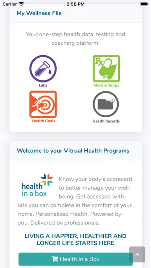 My Wellness File is a suite of online and mobile services that returns the power of health to you. This App links you to your singular destination of your health-related data, testing, coaching, and purchasing of virtual health programs and products.