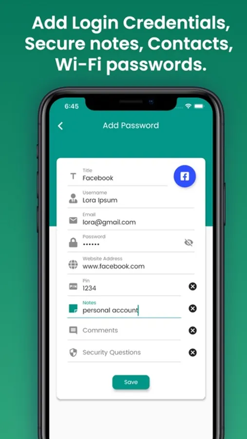 Keep Information in Secure Password Vault. Password manager app DroidPass is more than just passwords. This password app securely stores personal info like your Contacts, Wi-Fi passwords, Secure Notes, or anything else you need to store secure and accessible.