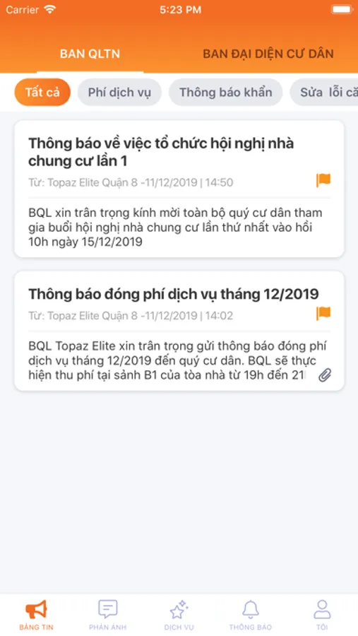 - Cư dân nhận những thông báo của ban quản lý chung cư.