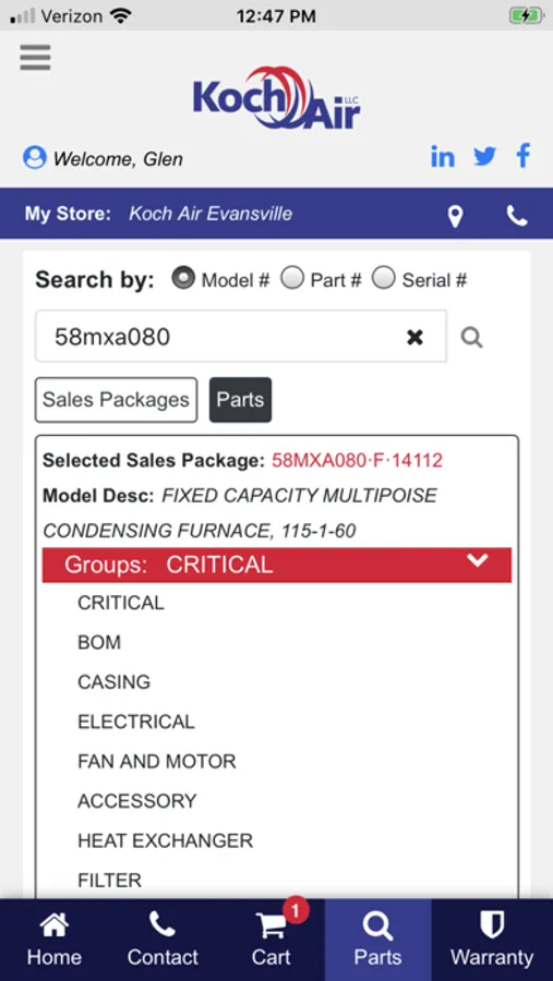 Our new site allows our Koch Air customers to lookup parts, search warranty information, find critical parts list and display detailed catalog information for the parts, supplies, and equipment that we sell.