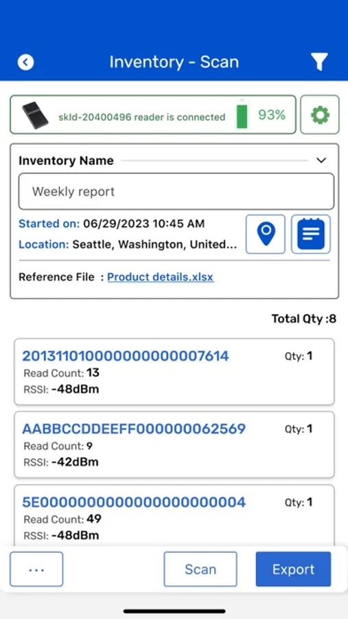 TagMatiks Wedge allows you to connect to and manage a wide variety of RFID Readers. Conduct inventories and export out to a wide variety of integration points including an API, CSV or a simple email. Filter and manage the data collected so you get exactly what you want.