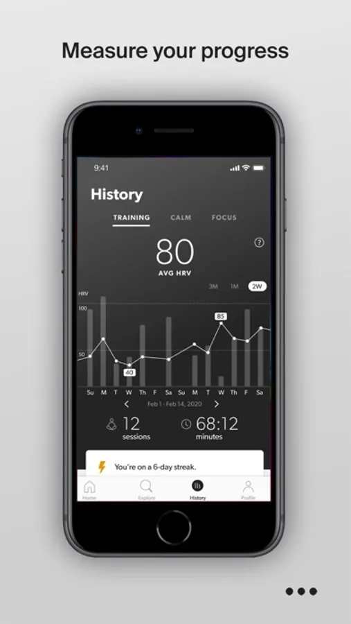 After each meditation, Core will show you how Calm and Focused you were. Long-term historical graphs lets you see how your resilience to stress is changing over time, and track your progress with daily streaks.