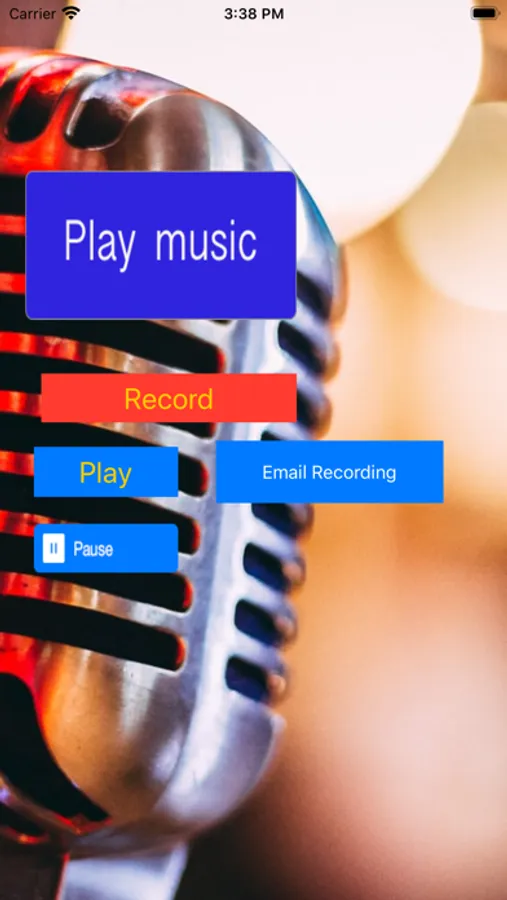 The user presses the "Play music" button to hear a track with four chords. They can then press the record button to record their voice and the music track. They can also pause the music anytime with the pause button. There is also a play button to hear what they have recorded.