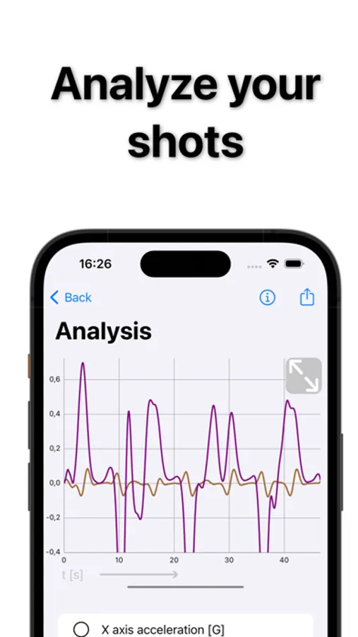 Analyze your shots by showing on the graph all motion data that your apple watch recorded.