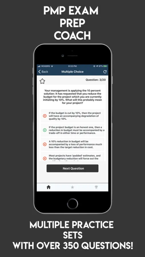 Practice for the PMP (Project Management Professional) exam. Practice with over 350 questions from previous PMP exams. Practice with multiple choice questions or flashcards.